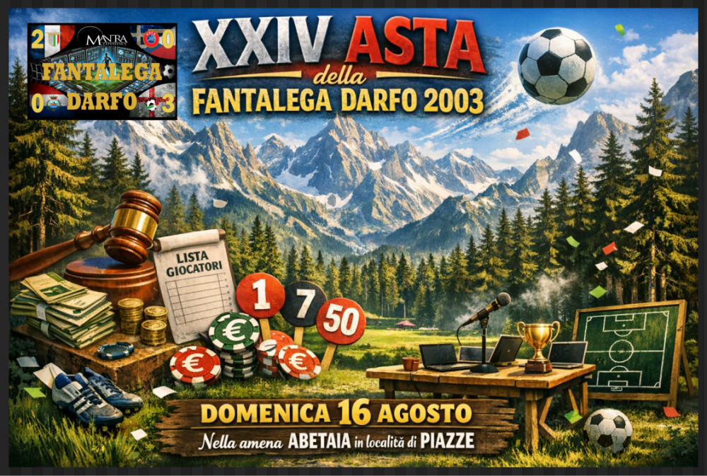 Con l'ufficialità dell'inizio della prossima stagione di Serie A prevista per il weekend del 22 Agosto con i primi anticipi ecco di conseguenza l'ufficialità anche della nostra data dell'asta che si terrà dunque DOMENICA 16 AGOSTO, locazione insolita subito dopo il giorno di Ferragosto che permetterà però a General Manager e staff di arrivare ben riposati all'evento. La kermesse dovrebbe svolgersi con ogni probabilità ancora nella confermata location dell'amena abetaia di Piazze che ha convinto nelle ultime stagioni. Ovviamente il consiglio è quello di rimanere sintonizzati sulle frequenze ...