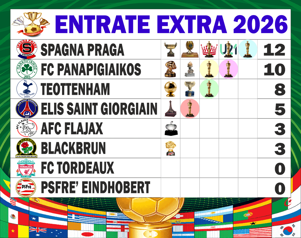 Ufficializzati i rinnovi di contratto per la stagione 2026 con diversi calciatori di alto livello bloccati dai propri club per un'ulteriore stagione rispetto alla scadenza del proprio contratto. Il Flajax dopo aver creduto a lungo nel recupero da un pesante infortunio viste le recenti prestazioni decide di allungare il contratto del senegalese Assane Diao. Il Blackbrun mette le mani per un ulteriore anno su Giorgio Scalvini, dopo aver creduto in lui nel bel mezzo di un terribile infortunio e averlo riportato al calcio giocato ora i gialloneri si aspettano un forte ritorno dall'investimento ...