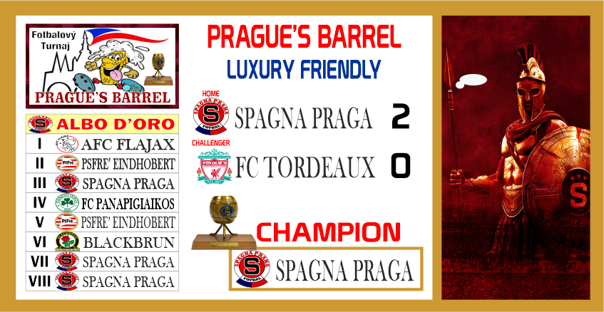 Per la seconda stagione consecutiva lo Spagna Praga trionfa al Letna Stadion nel Prague's Barrel, e per il secondo anno consecutivo contro squadre francesi avendo battuto la scorsa stagione l'Elis Saint Giorgian. Modalità però decisamente differenti di successo perchè se contro i parigini era stata cruenta battaglia con il Tordeaux si rivela una passeggiata di salute con i girondini che si presentano alla sfida senza staff tecnico e il risultato è inevitabile con un cinico 2-0 da parte dei padroni di casa passeggiando su una squadra senza motivazioni e senza costrutto. I cechi realizzano co...