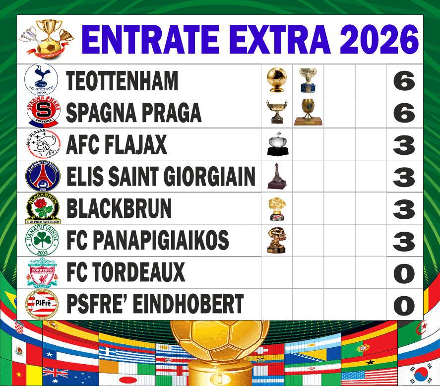 AFC FLAJAX - FC TORDEAUX; BLACKBRUN - SPAGNA PRAGA; PSFRE' EINDHOBERT - ELIS SAINT GIORGIAIN; TEOTTENHAM - FC PANAPIGIAIKOS;