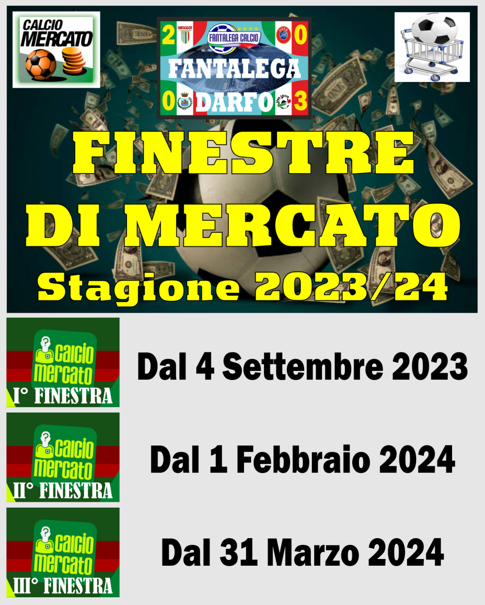 Dopo il fallito esperimento della scorsa stagione dettato anche dalla situazione del mondiale nel bel mezzo della stagione delle quattro finestre di mercato dalla prossima stagione si torna alle canoniche tre. La prima è prevista dal 4 di Settembre immediatamente dopo la chiusura del mercato in concomitanza con la prima pausa per le nazionali, poi una lunghissima tirata sino al 1 Febbraio per il classico mercato di riparazione invernale, l'ultima chiamata di mercato per il finale di stagione con un occhio interessato sulla stagione successiva sarà in programma dopo il 31 Marzo.